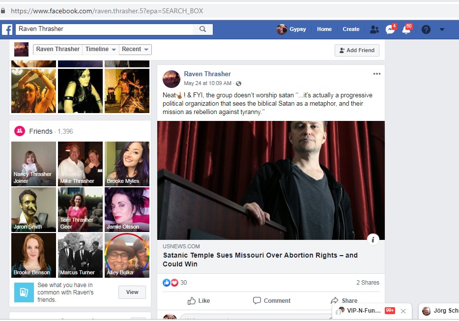 Raven glorifiees the Satanic Temple. Her 30 friends like and LOVE it! Satanic Temple is a “progressive organization” according to her. Raven is not just any Satanist. She is a PROUD SATANIST!!! If you join the Satanic Temple, please, mention her name so she can get a referral fee.